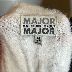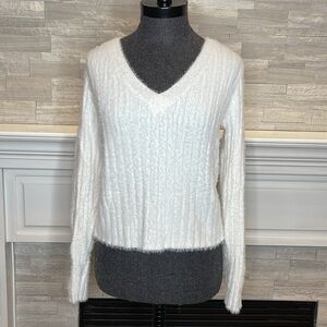 Major Label Group White Fuzzy Rib Knit Sweater Size Medium
