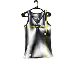 Tampa Bay Rays, striped tank top, women's sportswear, medium size, Major League Fitness, cotton blend, navy white stripes, sleeveless top, Rays fan gear, summer wear, v-neck tank, comfortable top, embroidered logo, athletic wear