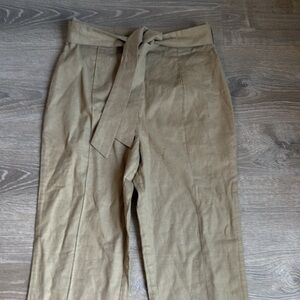 Self: 48% linen, 45% cotton, 7% elastane Trim: 97% poly, 3% elastane Hand wash Hidden back zipper closure Detachable waist tie closure 2 front pockets Lightweight linen fabric with pintuck seam