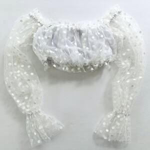 Majorelle Baby Bye Bye Top White Polka Dot Sheer Crop Top Revolve NEW