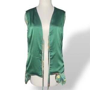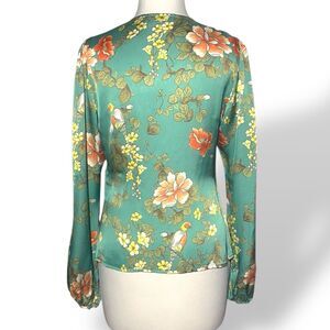 Majorelle Blouse Top Women Size S Green Floral Bird Print Long Sleeve Open Front