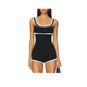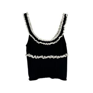 Majorelle 'Brielle' Black Viscose Tank Top Size S: knit lettuce trim, lightweight ribbed knit fabric, sleeveless, measurements: 11.5 inch bust x 16.5 inch length.