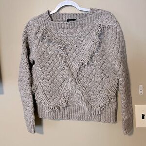 Majorelle Cable Knit Fringe Wool Blend Cropped Sweater