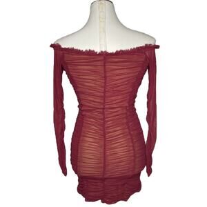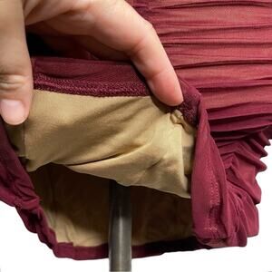 Majorelle Darling Dress in Merlot size XS. The sleeves are sheer. No flaws of any kind, it’s in excellent preowned condition.