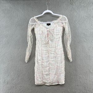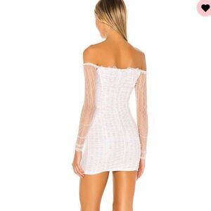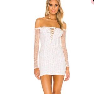 A delicate fabrication is contrasted by sexy appeal in the Darling Dress by Majorelle. Ruched mesh, ruffled trim, and a lace-up front all come together to mix sweet and sultry design. Skin tight to hit all the right curves, this piece is one to reach for when going out with the girls.