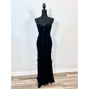 Majorelle Giules Gown in Black Small Maxi Length Strapless Lined Ruffle Party