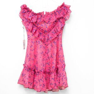 Majorelle Grace Mini Dress Floral Off The Shoulder Chiffon Pink Purple XS New