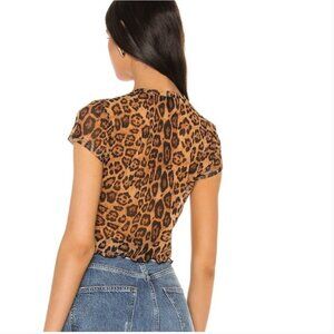 Revolve Majorelle Leopard Print Baby Tee Mesh Crop Top Excellent condition Size: medium Material: polyester, spandex