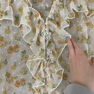 Majorelle Mariel Sheer Floral Ruffle Sleeve Blouse Size Small