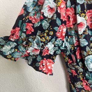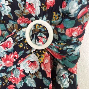 This Majorelle fit and flare mini dress is perfect for any occasion. The black floral print adds a touch of elegance while the pleated accents and buckle make it stand out. The V-neckline and puff sleeves create a flattering silhouette, and the lightweight, stretch fabric ensures comfort all day long. The dress is fully lined and features ruched detailing for a slimming effect. Hand wash only.