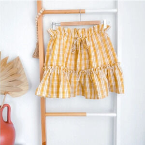 Majorelle Charlie Ruffle Tiered Plaid Checkered Mini Skirt Orange Yellow
