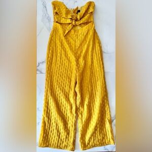 Majorelle Mustard Yellow Cropped Cutout Jumpsuit, Strapless Wide-Leg Size Small