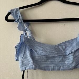In good preowned condition. Cute little gingham crop top with ruffles on the straps. From Revolve.