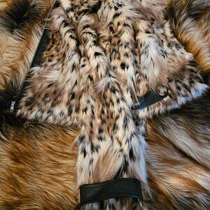 Majorelle S Faux Cheetah Fur Coat Faux Leather Accents Zippered Wildcat Soft