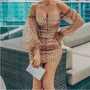 Majorelle Secrets Mini Dress Dark Nude Polka Dot
