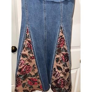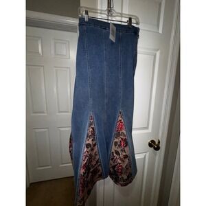 Majorelle Women's Denim Floral Maxi Skirt Unique Mermaid Style Size L