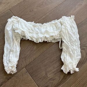 Majorelle Women's White Cropped Long Sleeves Off the Shoulder Top Size Small