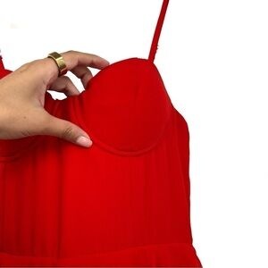 Majorelle Zelda Fitz Gown Sleeveless Chiffon Floral Lace High Low Maxi Dress in Red. Size EXTRA SMALL.