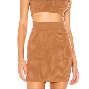 Revolve Majorelle women’s size S Zena knit Bodycon mini skirt in camel tan