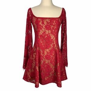 Majorelle x Revolve Benson Red Lace Off Shoulder Mini Dress Size Woman's Small