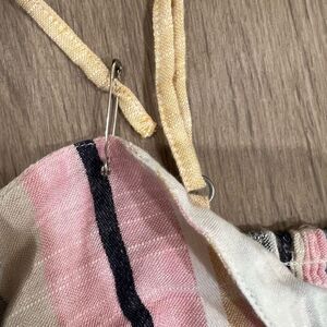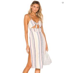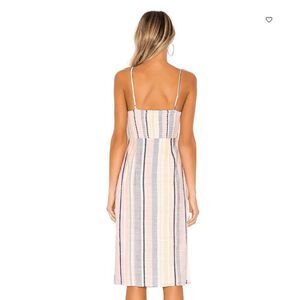 Self: 66% rayon, 34% cotton.Lining: 100% viscose. Hand wash cold. Fully lined. Front tie closure and smocked back panel. Adjustable shoulder straps. Hidden side zipper closure. Imported. Revolve Style No. MALR-WD586. Manufacturer Style No. MJD491 U19.