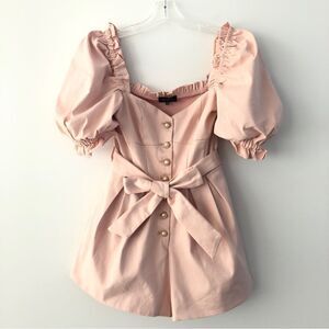 Majorelle Zosia Romper in Peachy Pink Puff Sleeve Tailored Revolve Cotton
