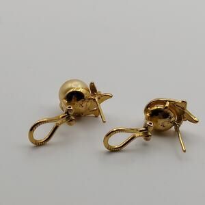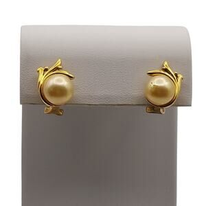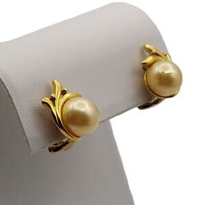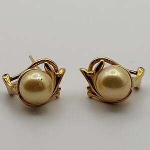 Majorica Faux Pearl Earrings Signed Round Gold Tone Flair Pierced Omega Back ~ (Matching Necklace Listed Separately)
