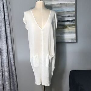 Mak. B Ivory Sheer Button Down Tunic Coverup Top