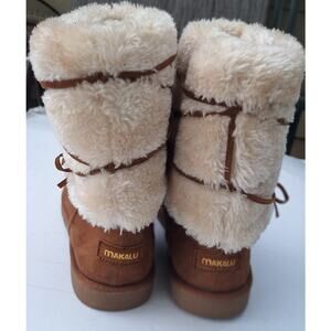 Makalu California Faux Suede and Faux Fur Cozy Fuzzy Ankle Boots Booties Tan 10