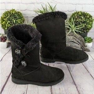 **Please see pics. Both buttons from side of left boot are missing as shown in pics. Easy fix if you're good with a needle and thread. Otherwise good condition.