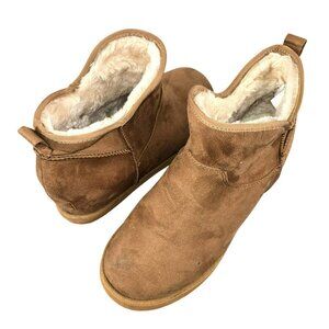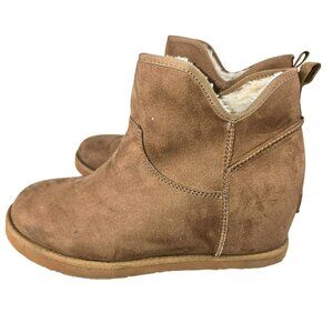 Makalu Womens Wedge Ankle Boots Tan Suede Faux Fur Lining Size 9M jh1779