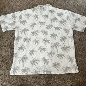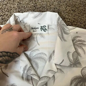 Makani Hawaii Shirt Mens Palm Tree Large Gray White Microfiber Hawaiian Aloha