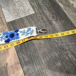 Makantu Purse Strap Handle Sheep Wool Ivory & Blue Floral Tassle Embroidered