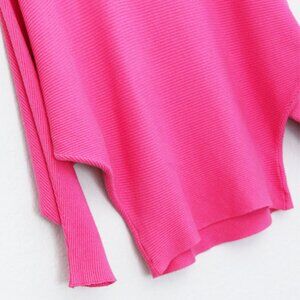 Makarthy Batwing Dolman Sleeves Ribbed Knit Drapey Sweater Cashmere Wool Blend