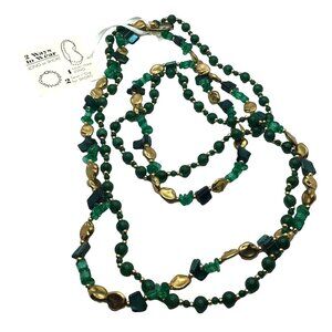 Make A Twist Necklace Two Ways To Wear Green Gold Tone Beaded Boho Style