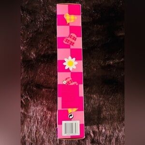 From Mattel's 'Grocery 1999' Collection, Barbie wears a pink and yellow heart-print skirt and a shiny pink top. She is the first grocery store doll to use the Bob Mackie head mold. A “groovy” ring is included for the child.