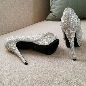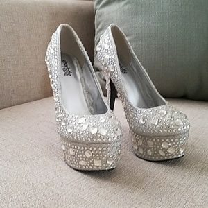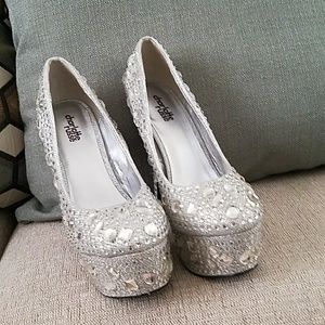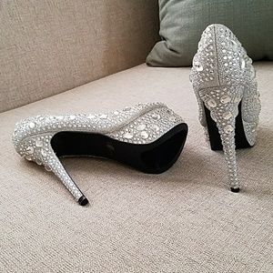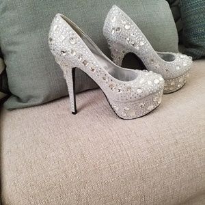 These are silver rhinestone stilleto heels. They are new without original package and never worn.