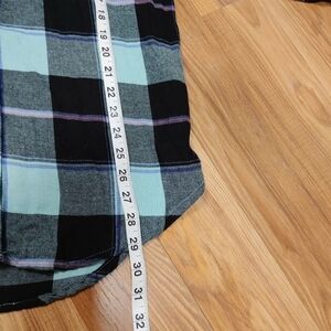 Make + Model Aqua Plaid Flannel Button Down Shirt Size XXS