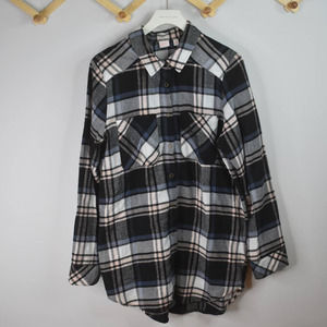 Make & Model long sleeve flannel plaid shirt in size small. good pre loved condition, light pilling.