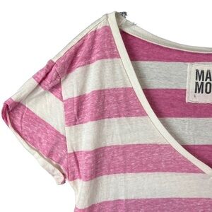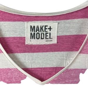 Make + Model Pjnk and White Short Sleeve V Neck Tee Shirt Size Large