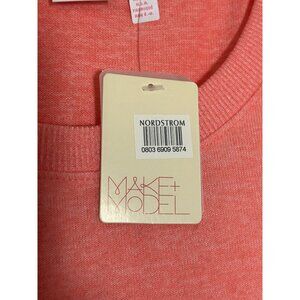 Make + Model Women's Crew Neck Ruffle Sleeve Sweater in Coral Peach Sz S - NWT