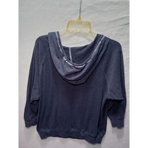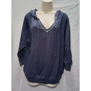 Make + Model women large pullover hooded sweatshirt 3/4 sleeve v-neck drawstrings in good used condition no notable stains or damage lay flat measurements