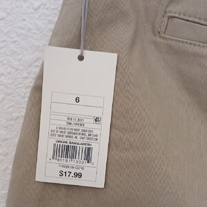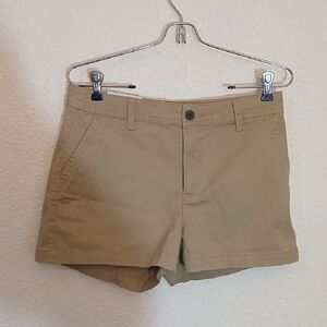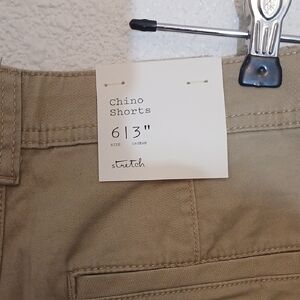 These light khaki cargo shorts feature a classic chino-style design with a flat front and a structured waistband. Made from durable cotton material, they provide a clean tailored appearance perfect for casual summer outings. The length is designed to fall above the knee for added comfort and style.