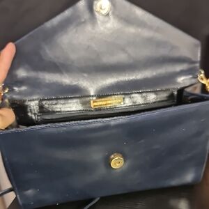 This stylish navy blue clutch is perfect for any occasion. Its sleek design adds a touch of elegance to your outfit.