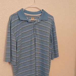 This blue polo shirt showcases a subtle striped pattern, offering a relaxed fit for ultimate comfort. Crafted from soft knit material, it features short sleeves and a classic polo collar, perfect for casual outings.