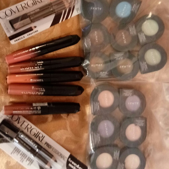 14 Almay Eye Shadows, 5 Rimmel Lip Gloss, 2pks-2each eye liners, Black & Brown