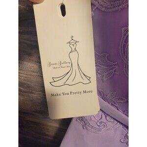 This Make You Pretty More Lavender Lace Mid length "Mother of the Bride" Dress size 12 is a stunning choice for formal occasions like evening parties, proms, or graduations. The A-Line silhouette, boat neck, and short sleeves add a touch of elegance, while the lace applique and bead embellishments give it a sophisticated look. The zipper back design ensures a comfortable fit, making it a perfect option for the chilly autumn, winter, or spring seasons. The beautiful purple color adds a touch of femininity to the dress, making it a standout choice for any special event.