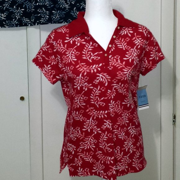 Red & White Fern Print Izod NWT 100% Cotton, measurements: 18" across front bust 22" from shoulder to bottom hem weighs 7 oz