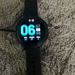 Stay connected with this sleek smartwatch featuring a black silicone adjustable band. Worn for two weeks before husband decided it just wasn’t for him. Will make sure it’s unlocked and will provide email in case there are any issues with connecting. It does have the cover over the face. You may want to replace just to be brand new. No flaws at all. Will include the $40 charger :) ((store description listed in pictures to help))