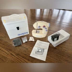 🌀 Accessories include: foot pedal, threader, needles, threaded bobbins, empty bobbins, instructions, and plastic carry case